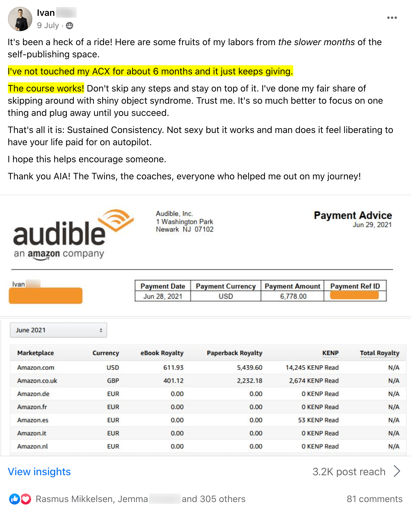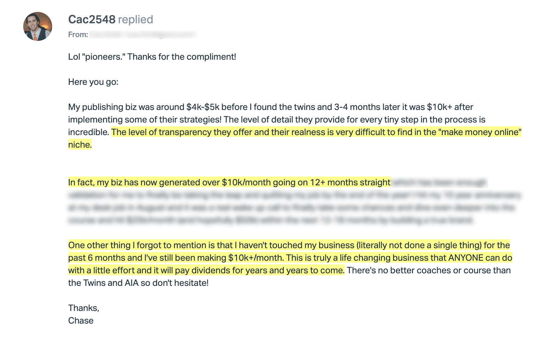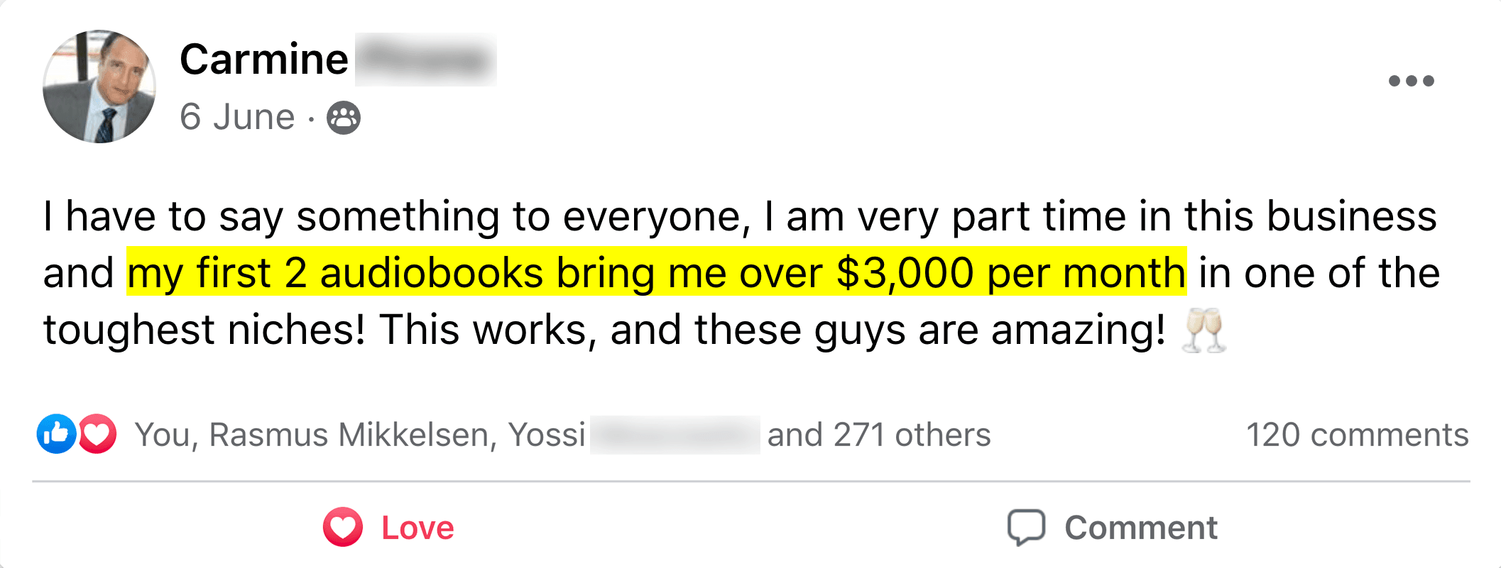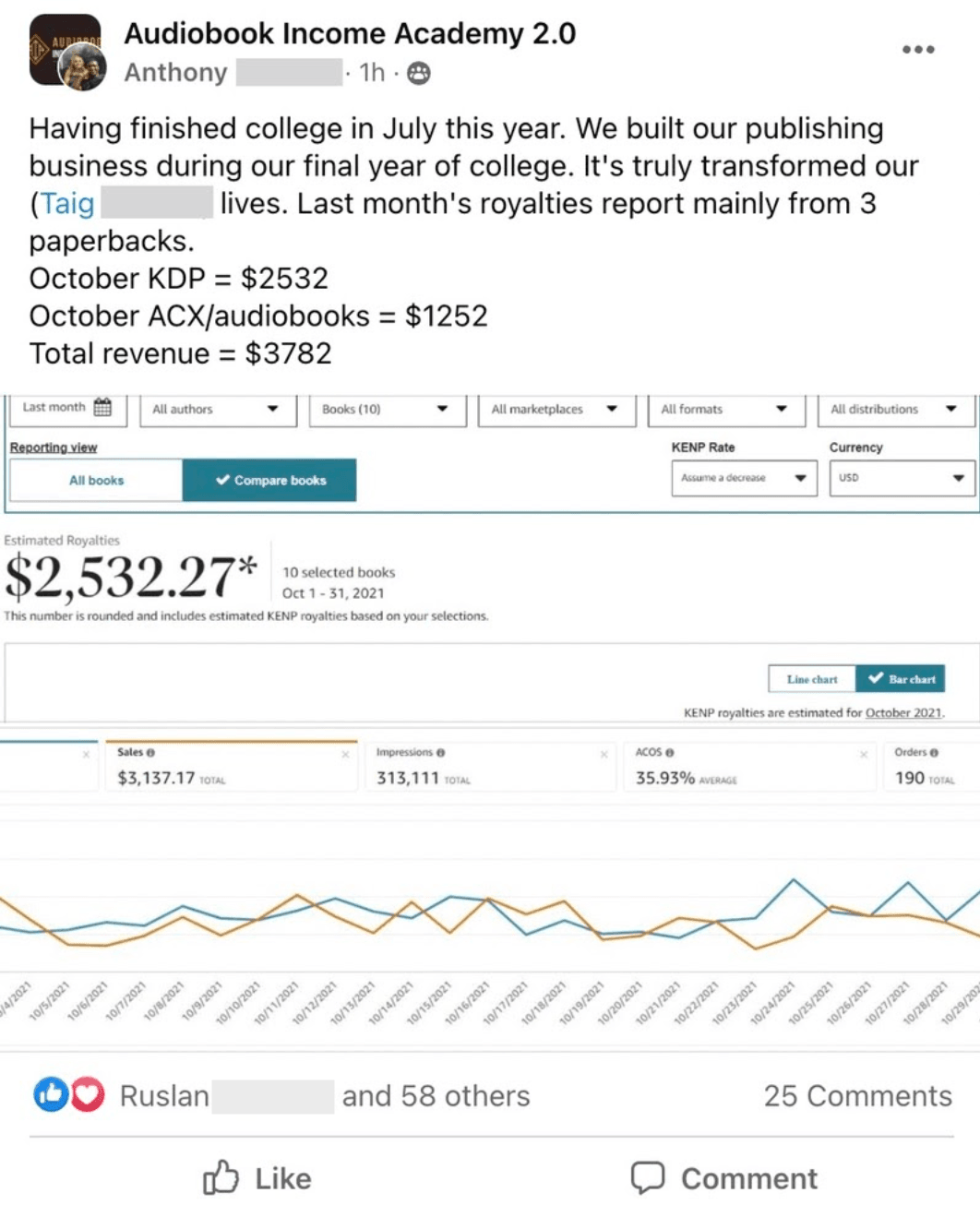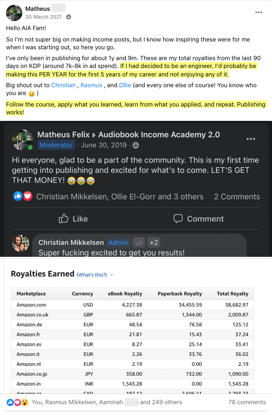 Rasmus & Christian Mikkelsen are the founders of Publishing.com, an online education company that helps ordinary people escape their 9 to 5 job life using the Amazon book publishing business model. Audiobook Income Academy 2.0 is the flagship program the Mikkelsen Twins created to fulfill their company's mission. You will be learning directly from the Twins, the fathers of audiobook publishing, who have created dozens of (verified) 5 and 6-figure audiobook publishers. These are people who had no skills and no experience within publishing before joining the AIA program who have now been able to quit their jobs and make more money than they ever did before at their job.
