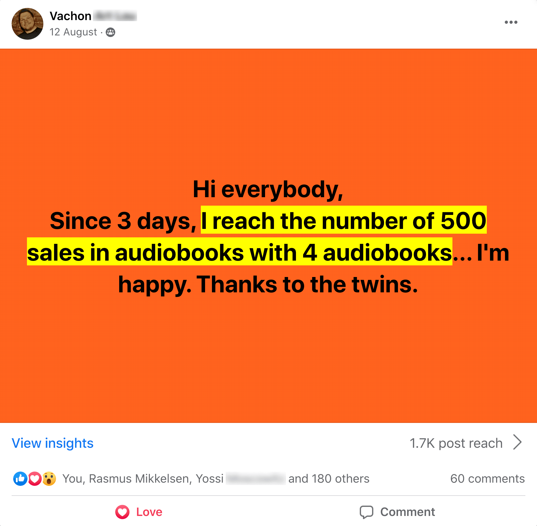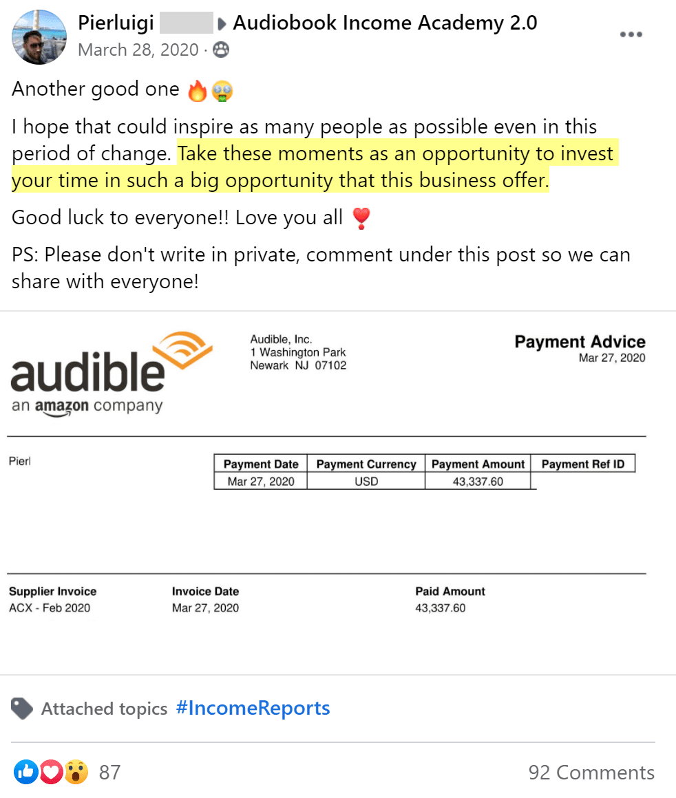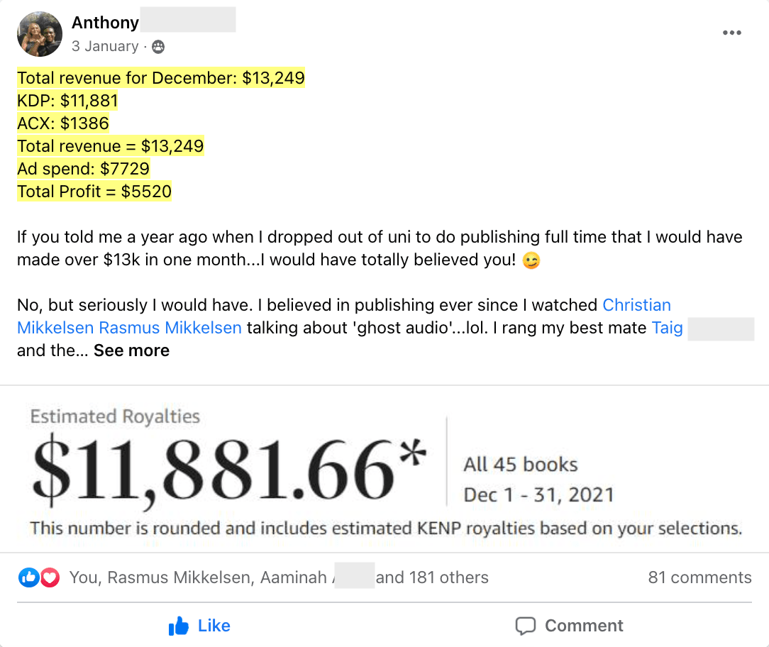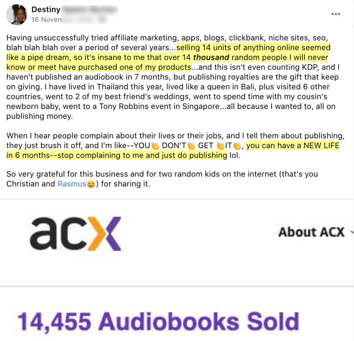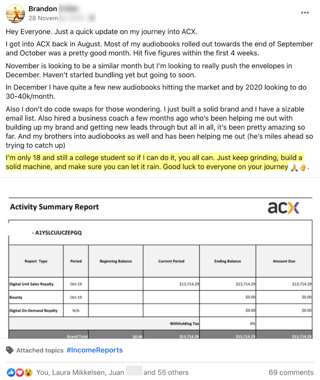 Rasmus & Christian Mikkelsen are the founders of Publishing.com, an online education company that helps ordinary people escape their 9 to 5 job life using the Amazon book publishing business model. Audiobook Income Academy 2.0 is the flagship program the Mikkelsen Twins created to fulfill their company's mission. You will be learning directly from the Twins, the fathers of audiobook publishing, who have created dozens of (verified) 5 and 6-figure audiobook publishers. These are people who had no skills and no experience within publishing before joining the AIA program who have now been able to quit their jobs and make more money than they ever did before at their job.